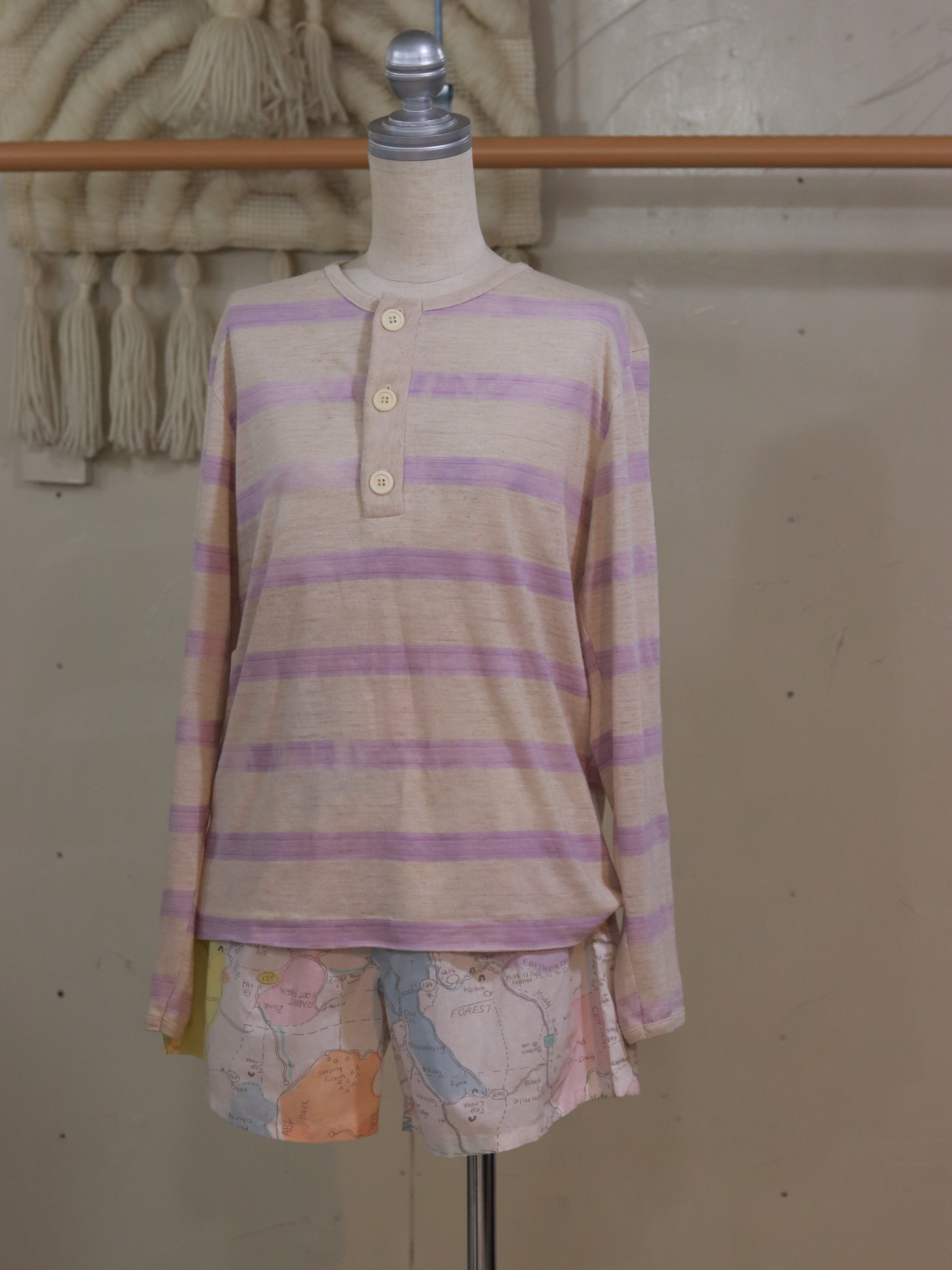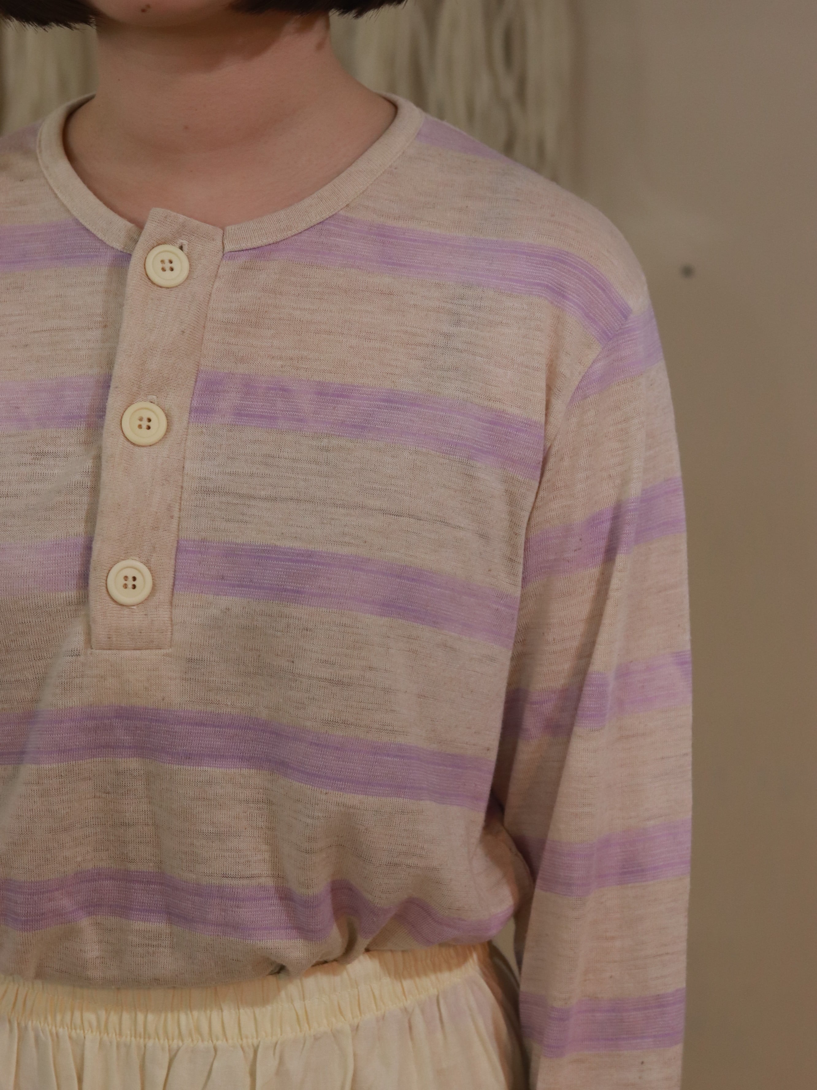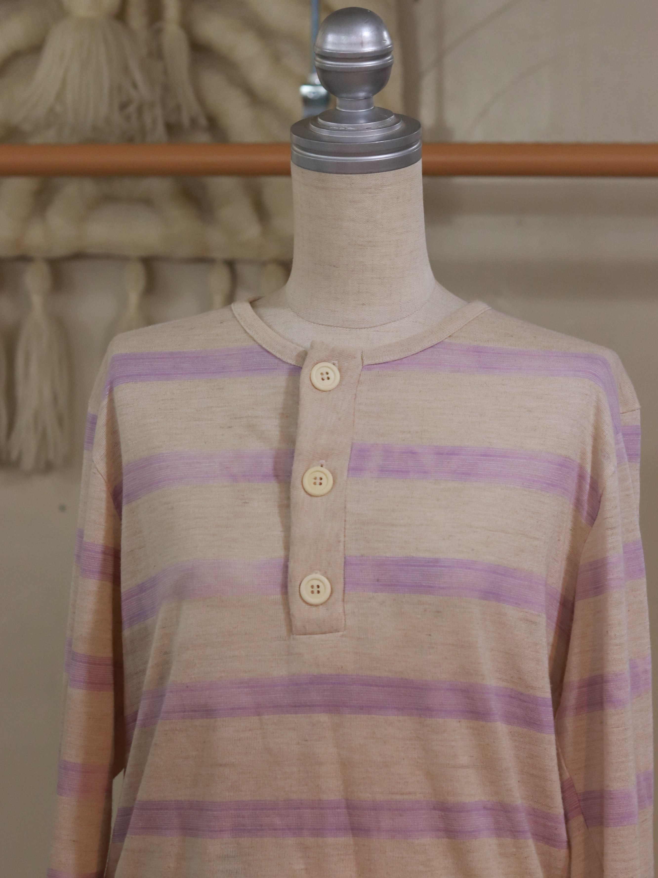 ベージュ、ペールパープルのお色味で薄い素材です。男性にもおすすめです。